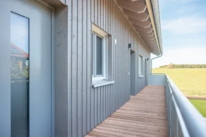 FassadeKombination Putz und Holzschalung (Boden-Deckelschalung gestrichen)